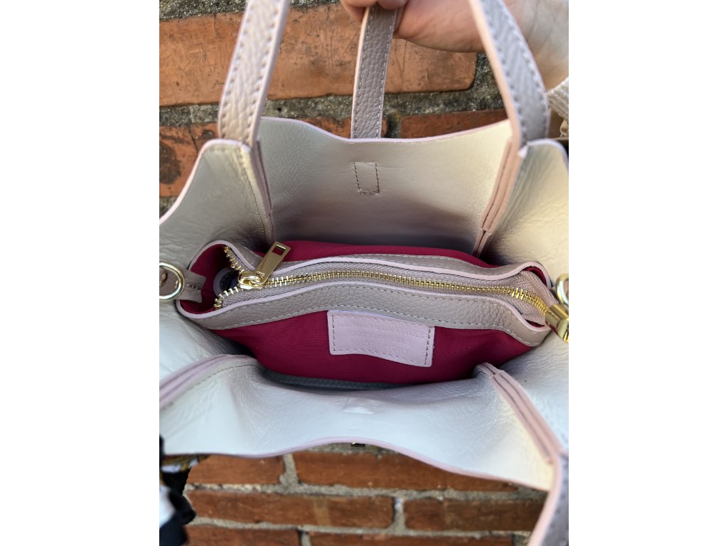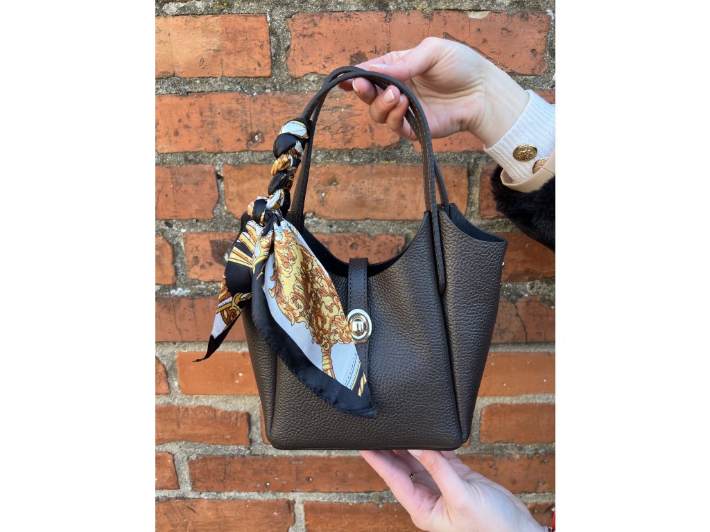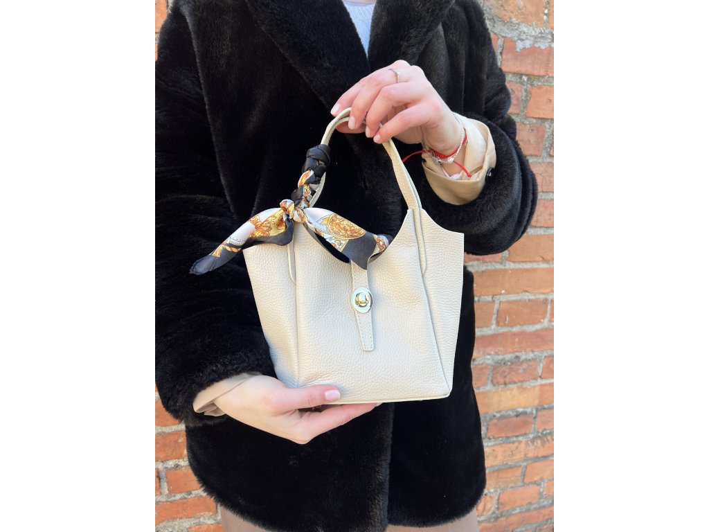 Rozkošná kabelka na zip se stylovým šátkem, který můžete odebrat dle libosti. Skvělá kabelka na jaro či léto. Uvnitř kabelka je červená látková podšívka a boční kapsa na drobnosti. Součástí kabelky je popruh přes rameno.