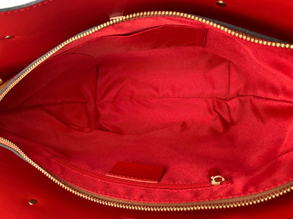 Nádherná velká kabelka na zip s červeným vnitřkem. Skvělá kabelka do práce i do společnosti. Součástí je i popruh přes rameno.
