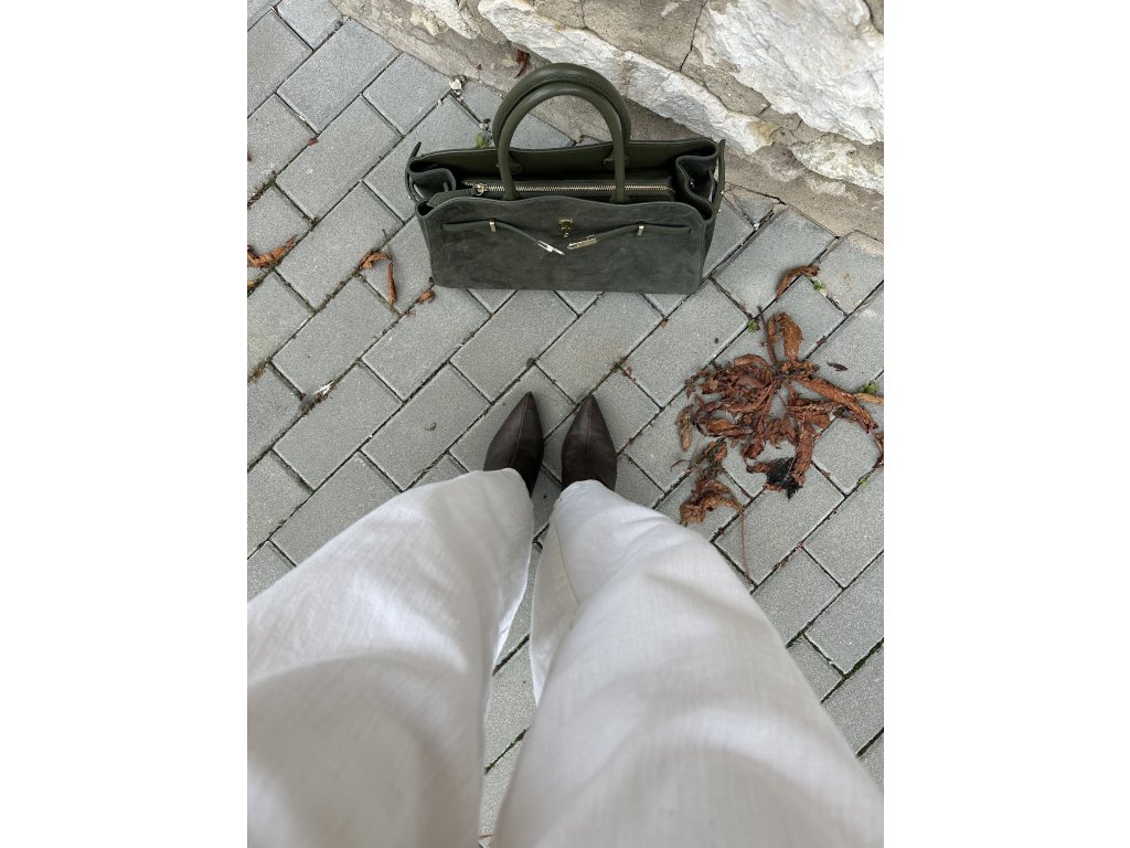 Prostorná a pevná, vyrobená z kombinace semišové a hladké kůže. Elegantní provedení a nadčasový design z ní činí dokonalého společníka pro pracovní dny i volný čas, dáte do ní A4. Uvnitř kabelky je kapsička na zip a kapsička na telefon. Ke kabelce je popruh přes rameno.