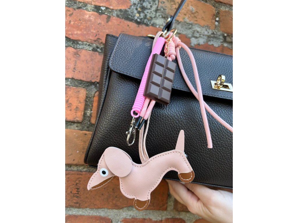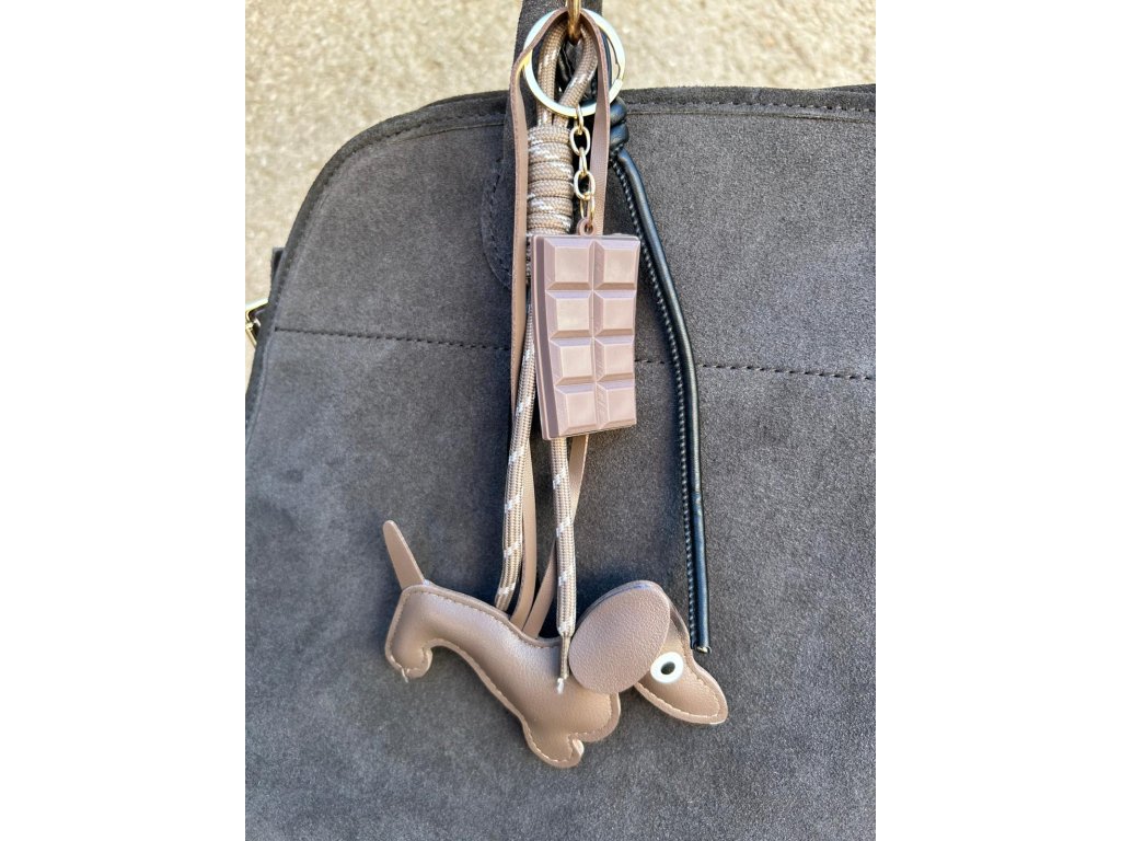 Roztomilá klíčenka s čokoládkou a koženým pejskem.