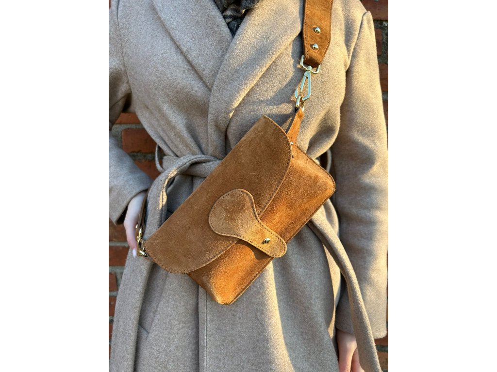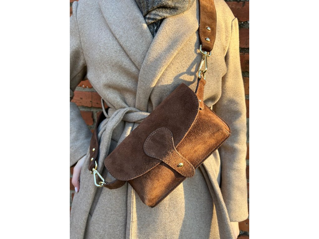 Stylová kožená semišová ledvinka Remus se zapínáním na magnet doladí tvůj každodenní outfit. Nastavitelný crossbody popruh se ti skvěle přizpůsobí, maximální délka je 100 cm.