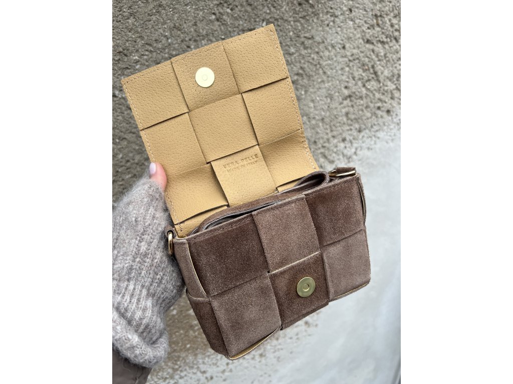 Perfektní menší semišová crossbody kabelka z proplétané kůže tě okouzlí svou originalitou a precizním zpracováním. Stylový design doplňuje praktické zapínání na magnet, které zajistí snadné a bezpečné používání.