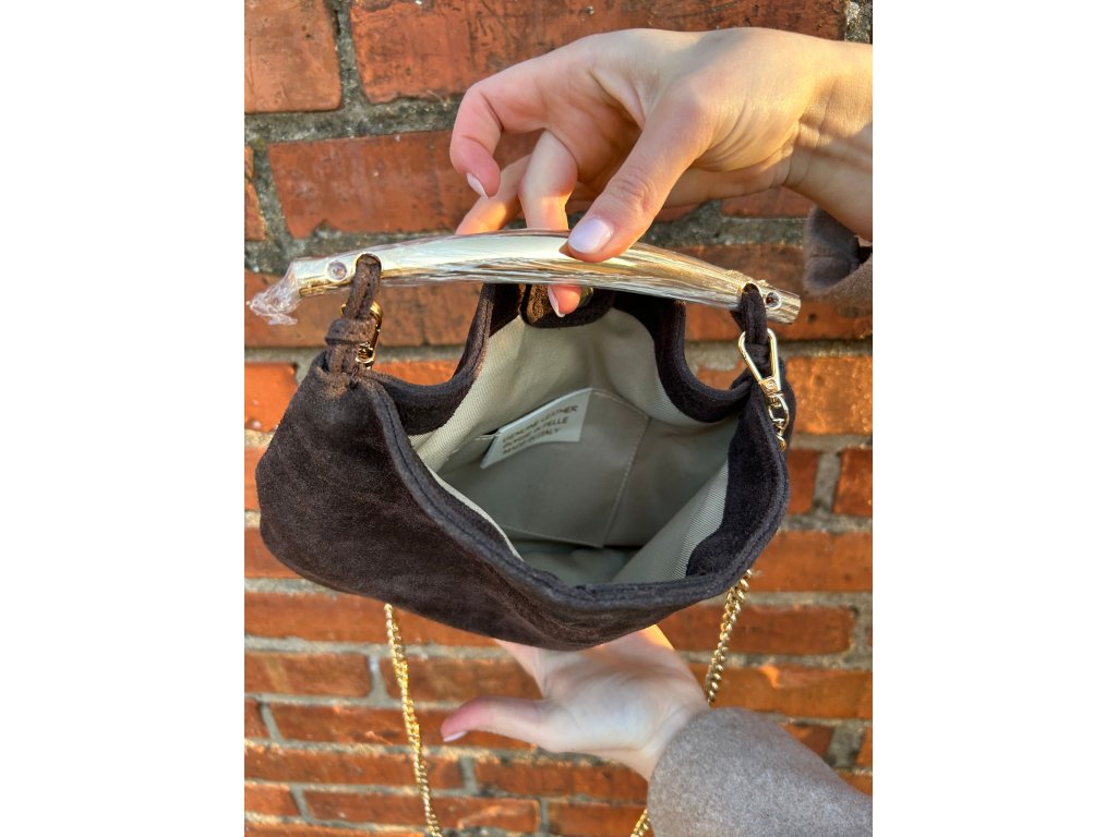 Tato stylová crossbody kabelka se zlatým pevným uchem je opravdu jedinečná – odlišuje se od všeho, co jsme doposud nabízeli. Originální design podtrhuje italský šmrnc a díky zlatému řetízkovítému popruhu ji můžeš pohodlně nosit jako crossbody. Perfektní kousek pro všechny, kdo chtějí mít zcela unikátní kousek v šatníku.