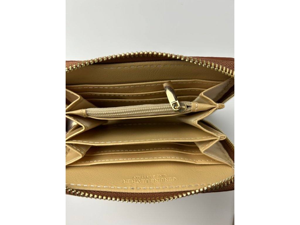 Peněženka Sola z pravé semišové kůže spojuje minimalistický design s jemností na dotek. Praktické uspořádání přihrádek na karty, bankovky i drobné, díky vnitřními zipu, doplňuje kompaktní velikost, díky které se vejde do každé kabelky. Precizní ruční zpracování a kvalitní zlaté kování zaručují dlouhou životnost i nadčasový vzhled.