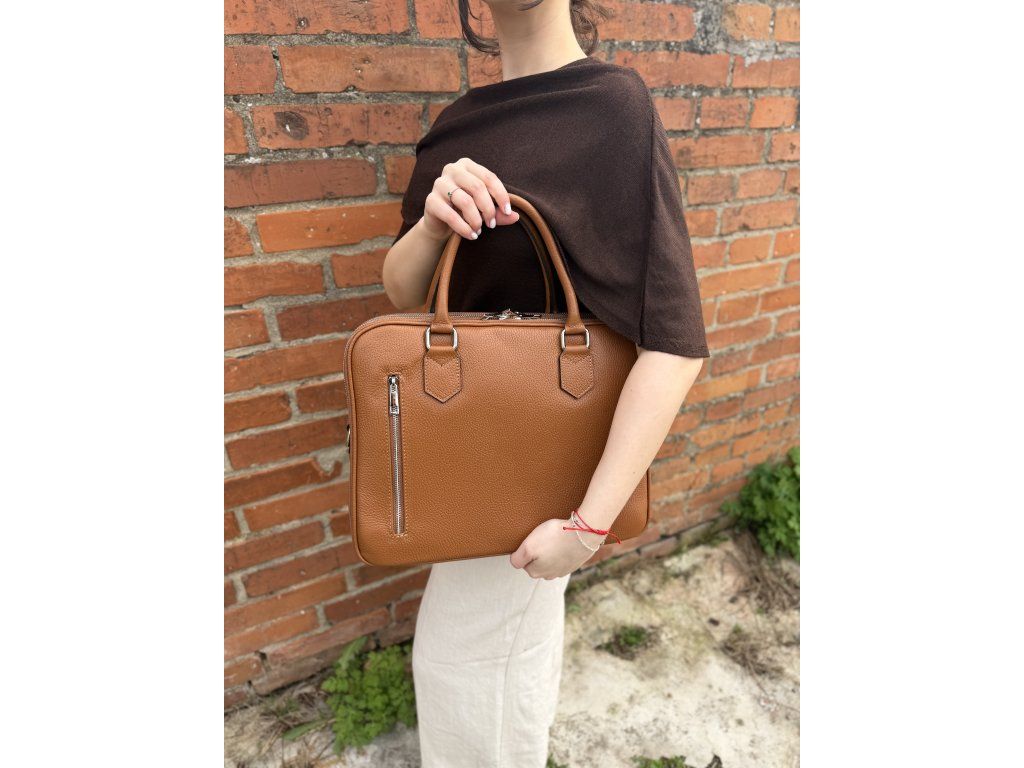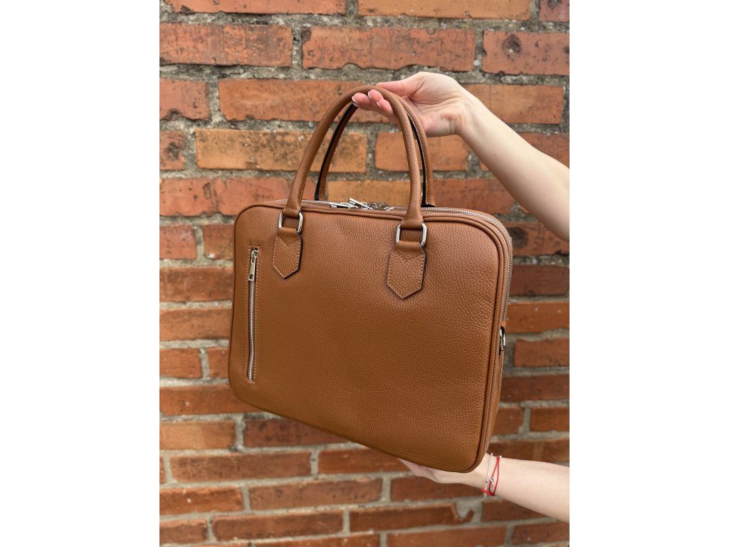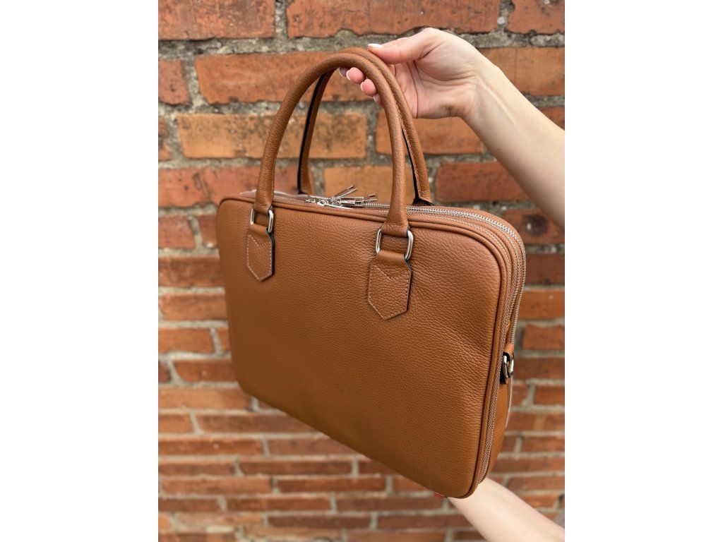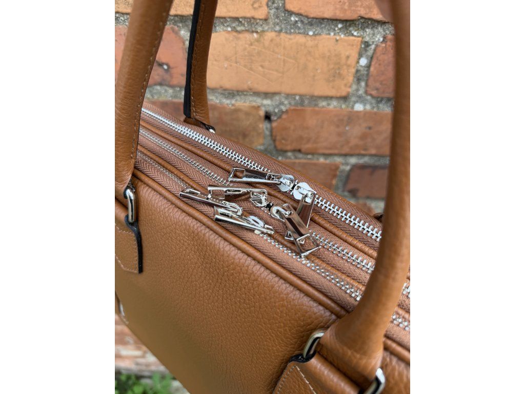Kožená taška na notebook Forlí kombinuje elegantní design se skvělou praktičností. Nabízí tři samostatné zipové části, přední kapsu na zip a pohodlný popruh přes rameno, takže máš vše přehledně uspořádané a vždy po ruce. Styl doplňují moderní stříbrné detaily. Rozměry 36 × 29 × 12 cm.