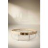 Pásek má praktický posuvný systém, kterým si snadno nastavíš přesnou délku bez nutnosti děr. Ozdobné zlaté zapínání slouží jako pevný upevňovací prvek i jako dekorační akcent — dodá outfitu elegantní lesk. Zapínání je navrženo tak, aby bylo pohodlné a spolehlivé pro každodenní nošení.