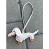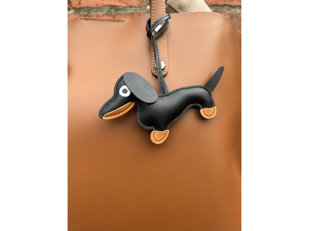 Hledáš roztomilý, ale kvalitní přívěsek na kabelku pro milovnice pejsků? Celokožený Bassotto — italský jezevčík — dodá tvé kabelce osobitý šmrnc. Připíná se pomocí dlouhého koženého poutka, které protáhneš a uděláš smyčku pro pevné uchycení.