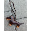 Přívěsek je vyroben z pravé kůže (celokožené provedení) s pečlivým prošitím a tvarovou výplní, která drží kontury jezevčíka.