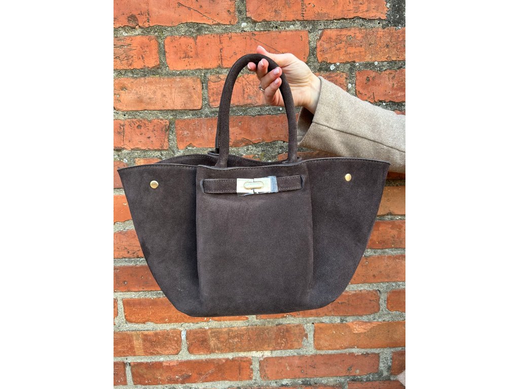 Objevte kouzlo semišové kabelky Farfalla, která svými širokými boky připomíná elegantního motýla v letu. Tento nádherný kousek z kvalitní kůže se pyšní zlatým zdobením, které jí dodává šmrnc a luxusní nádech. Kabelka je ideální volbou pro každodenní nošení, ať už do práce nebo na městské pochůzky.