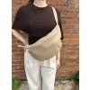 Ledvinka má nastavitelný popruh (délka 57–86 cm), který umožní pohodlné nošení přes rameno nebo jako crossbody. Upozornění o popruhu: jelikož model nemá karabinky, nelze na něj nasadit jiný popruh — popruh je pevně integrován a nastavitelný.
